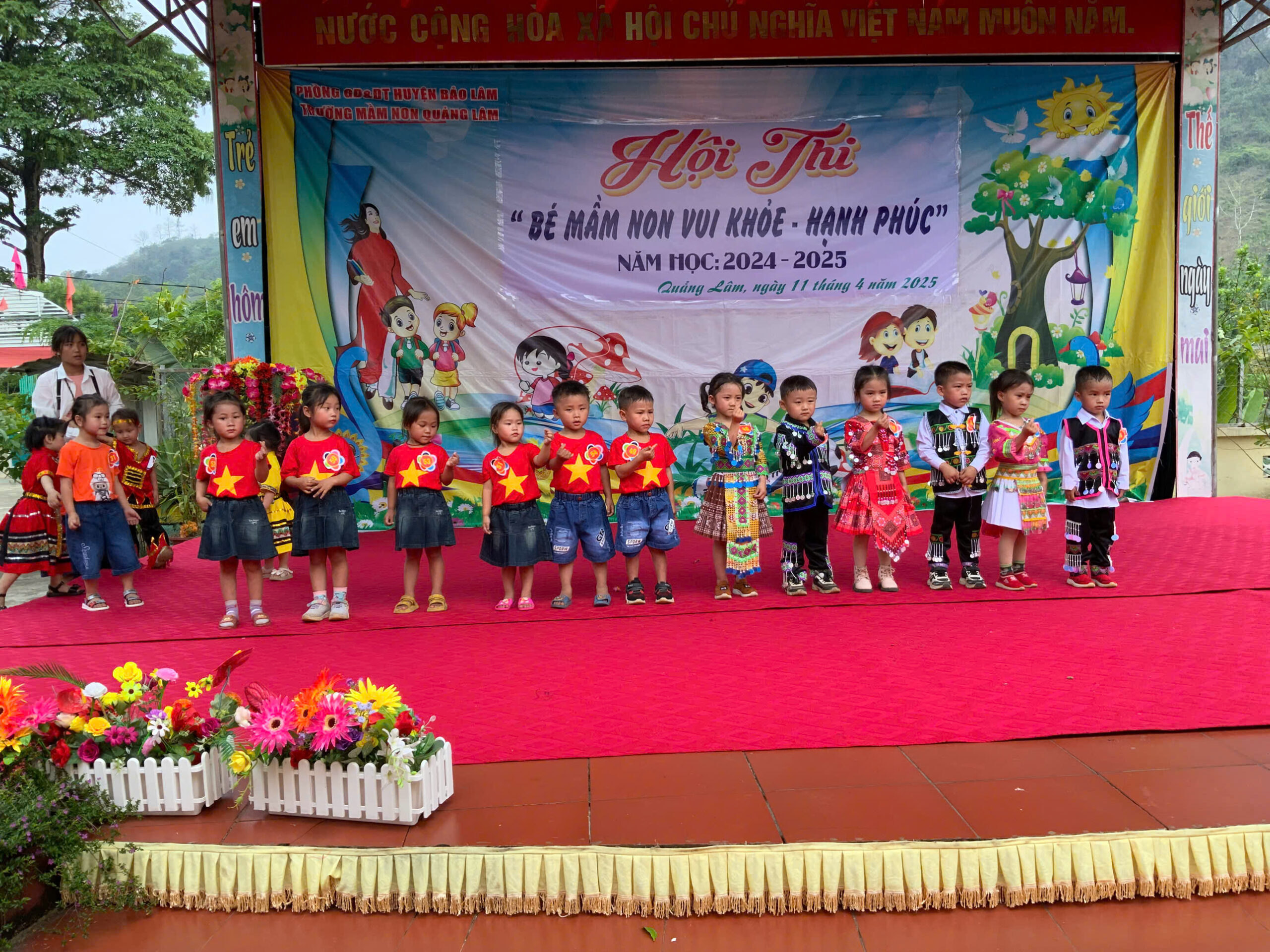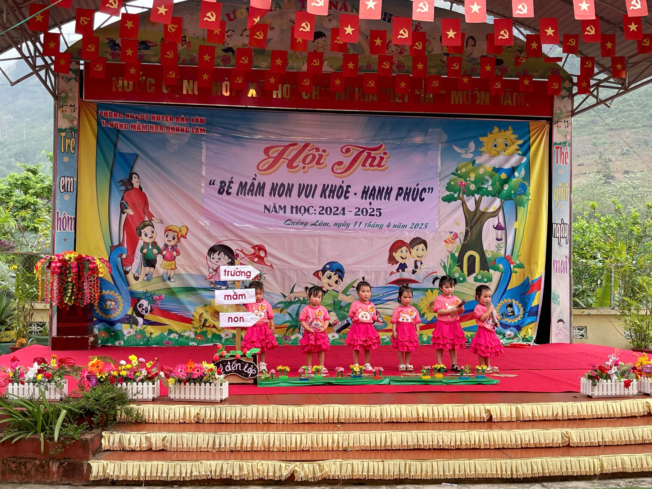 Thực hiện kế hoạch năm học 2024-2025, trường Mầm non Quảng Lâm tổ chức Hội thi “Bé Mầm non vui khoẻ hạnh phúc” với 09 lớp tham gia của các khối lớp Nhà trẻ, 3 Tuổi, 4 Tuổi. Qua hội thi nhằm đẩy mạnh tuyên truyền về chất lượng giáo dục của nhà trường đi lên.